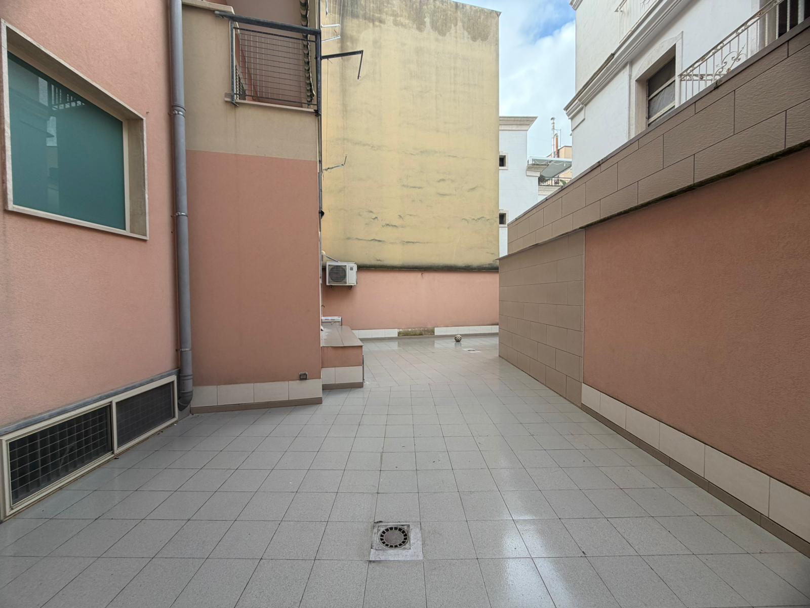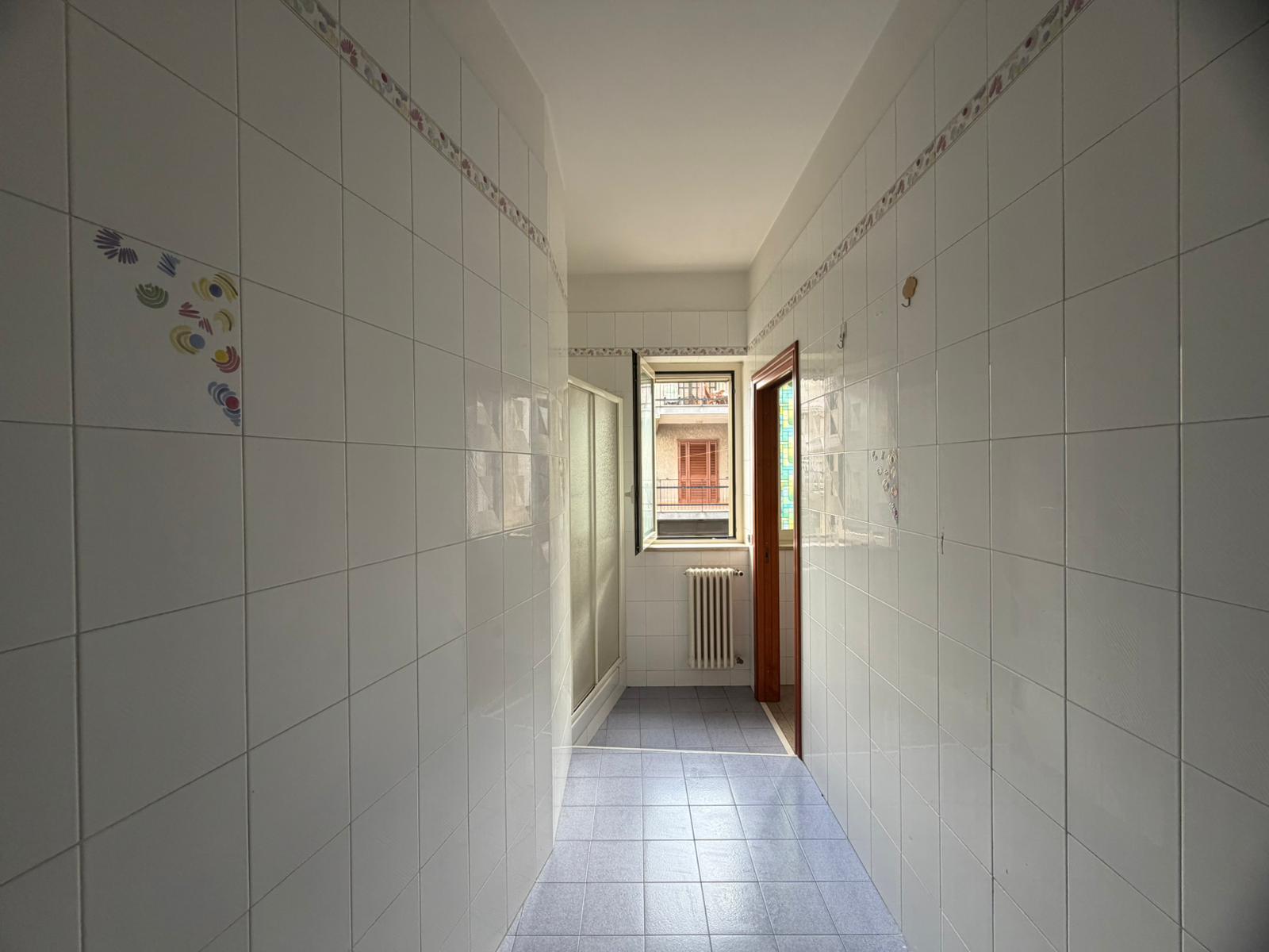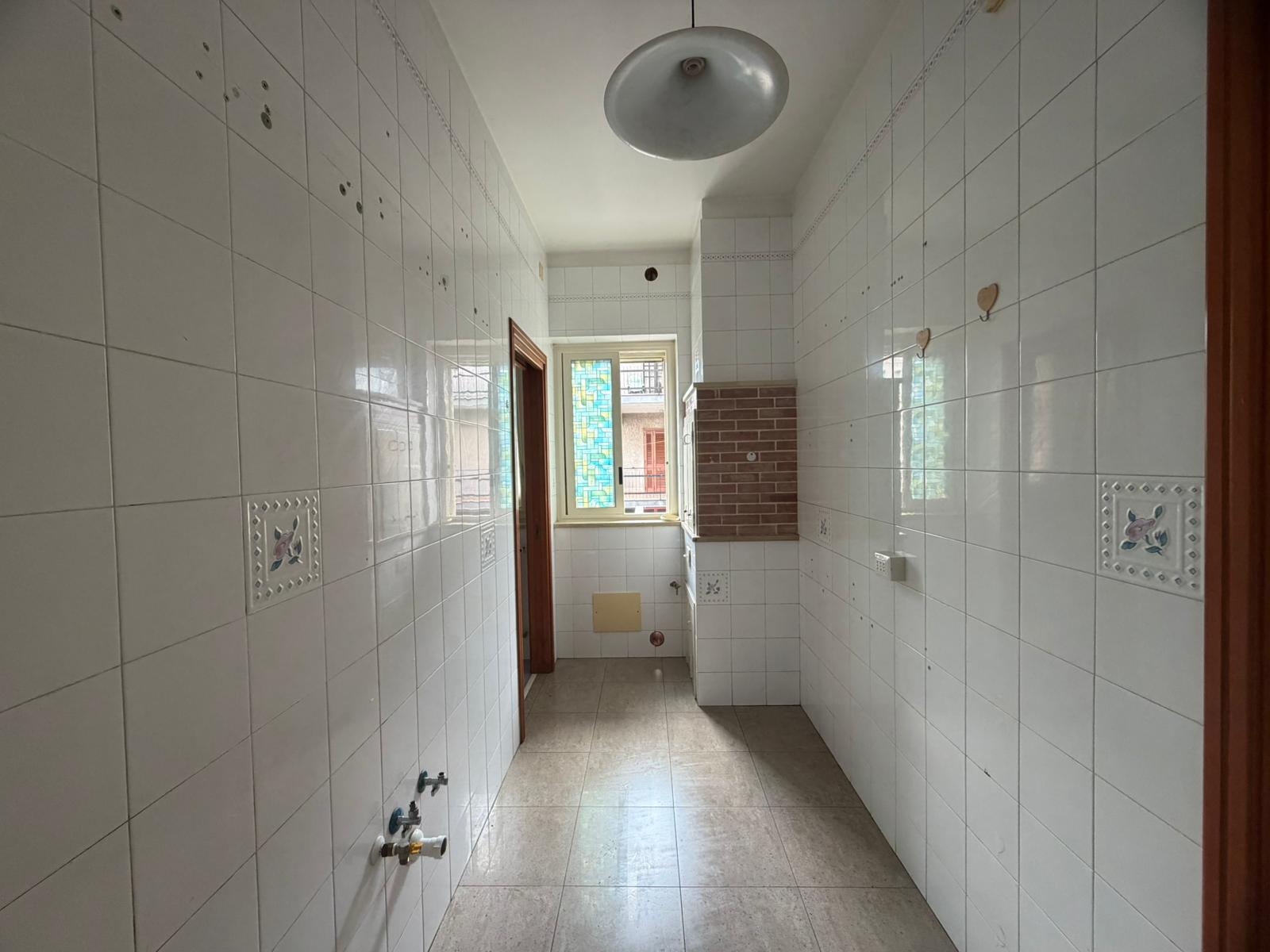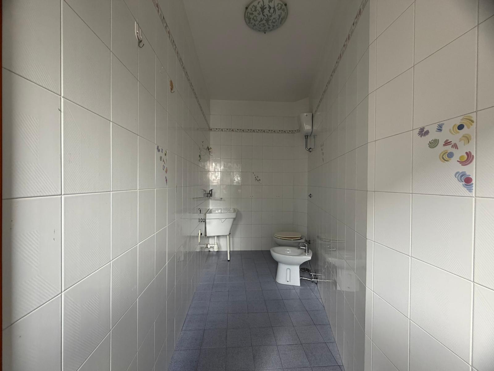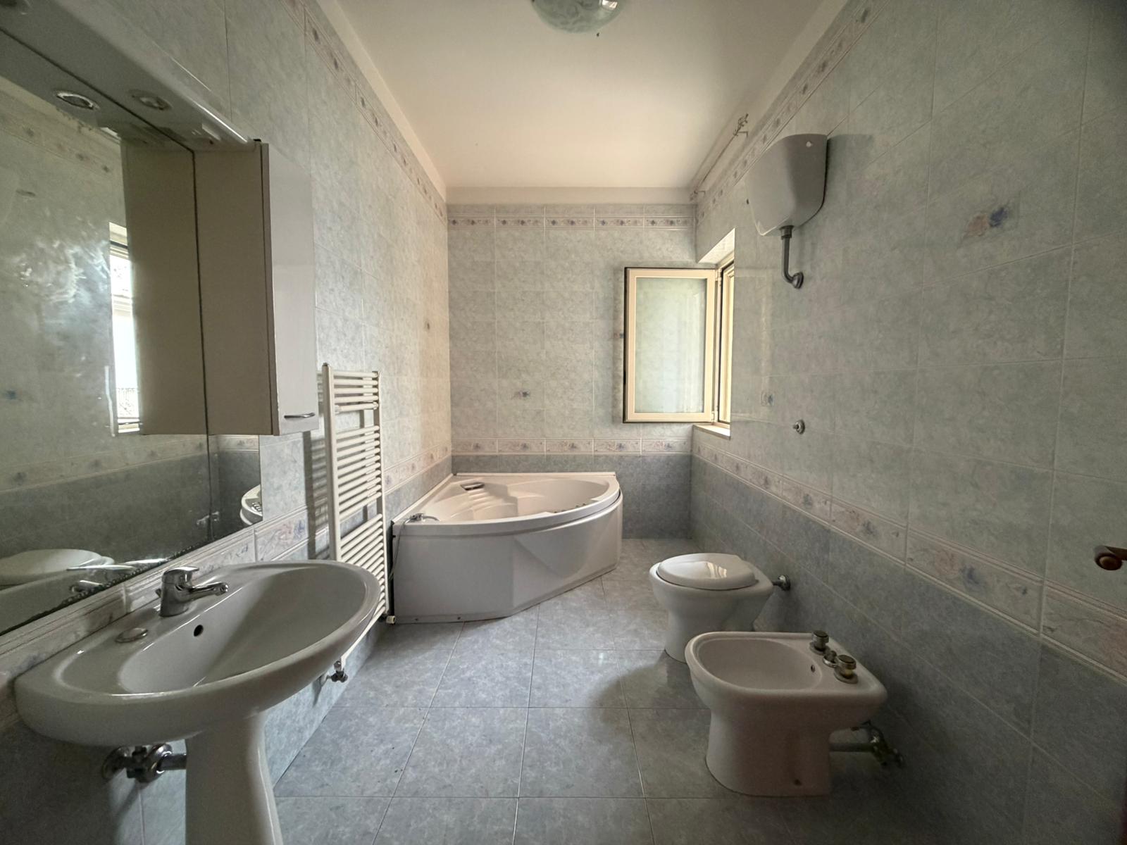 In zona centrale, rifinito e luminoso appartamento semindipendente al 1° piano composto da ingresso in disimpegno, ampio salone, cucinotto con accesso al doppio servizio, 3 camere e bagno. Atrio di circa 70 mq al piano terra e garage seminterrato di circa 100 mq.